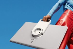 Taşınabilirlik özelliği de ön planda. Cihazın arka kısmındaki taşıma kulbu sayesinde kolayca taşınıyor ve aynı zamanda masaüstü standı olarak da kullanılabiliyor. Bu sayede cihaz, ek bir desteğe ihtiyaç duymadan masa üzerinde sabit durabiliyor.